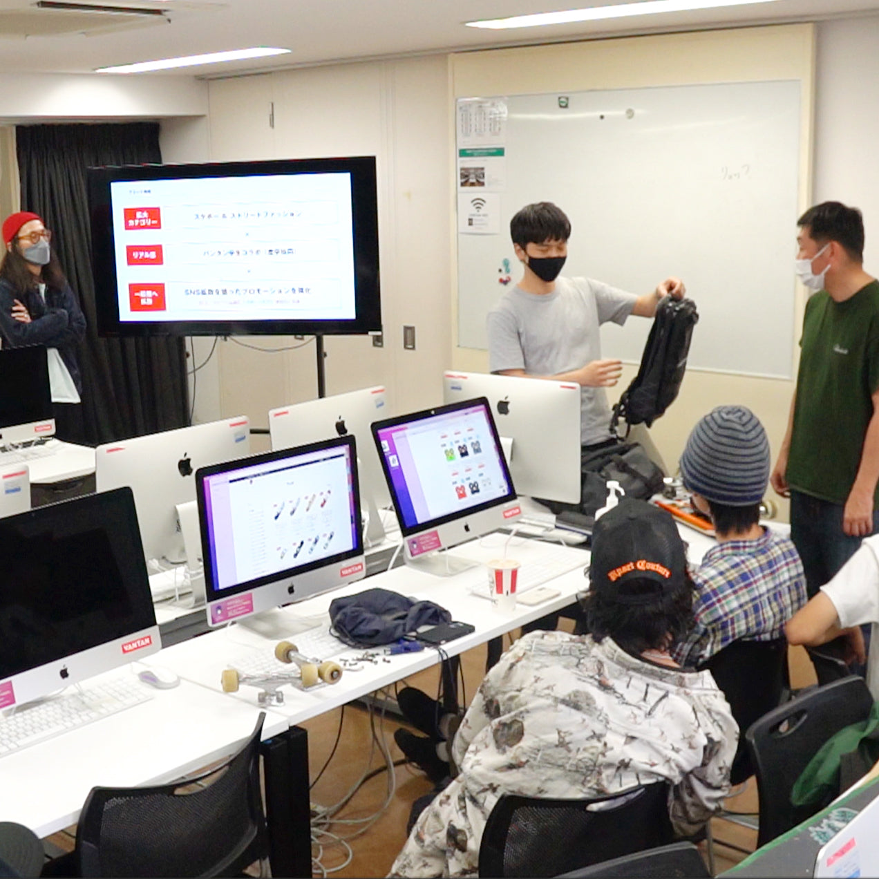 ポイントは、「スケーター少年たち(学生)が興味を持って、楽しんでくれるか?」ということ。彼らは本当に“正直者”なので、嫌なものは嫌!興味のないことは聞かない!楽しそうことには全力で取り組んで楽しむ!というスタイル。せっかくの企画なので、大人から無理にやらせるということをすると、彼らもノッてこないし、そうしてできた産物も当然良いものではありませんよね。何度も影正先生とMTGし、「どうやったら彼らが楽しんでくれるか?」を考え、下手な小細工なしに、大人と学生が真っ向からぶつかってみることにしました。