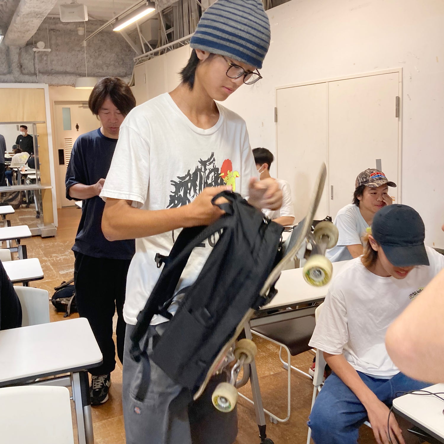 普通科高校出身の私としては、「高校生ってこんなんだっけ?」と戸惑うほど、自由な校風、雰囲気。正直に言ってしまえば「全国のヤンチャなスケボー少年が、この教室に集結した感じで、向かってきたらどうしよう。。。」と少しビビりながらの第一声。