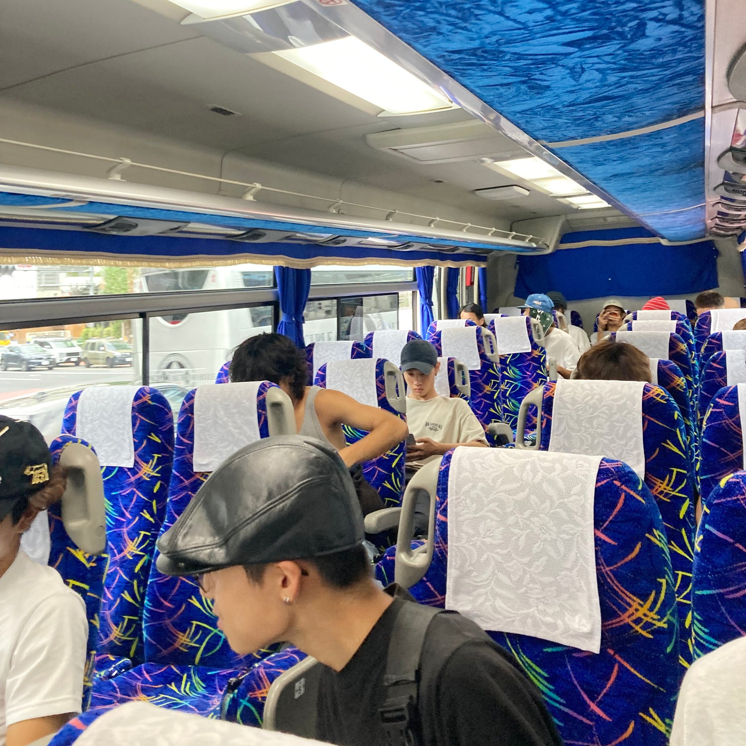 バスの車中でも、いつもと変わらずマイペースなスケーター少年たち。集合が朝早かったにもかかわらず、朝から全開で盛り上がっているグループ。のんびり隣の友達と話をして過ごす子たち。ずっと寝ている子。ずっとお菓子を食べている子。爆音でYouTubeを見る子。